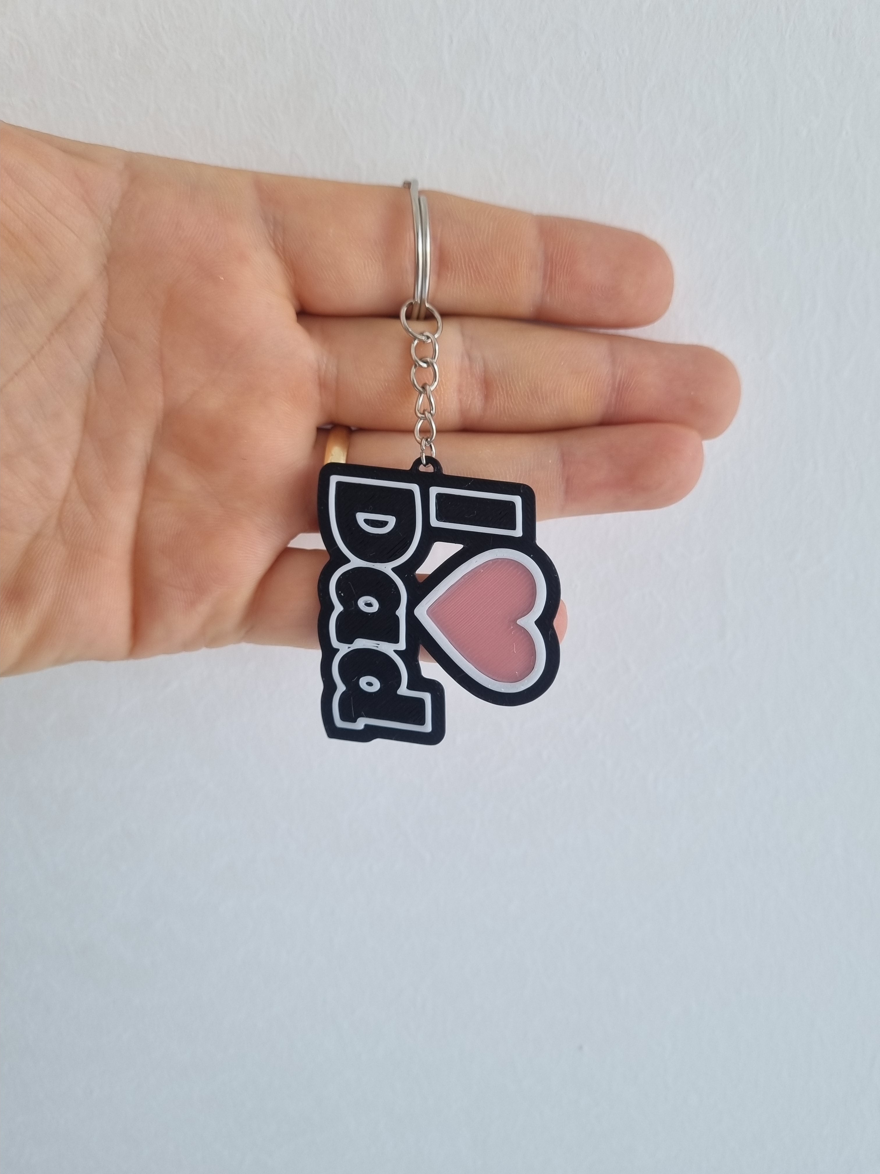 Each keychain is 3D printed from durable PLA, giving it a smooth, lightweight finish that stands up to daily use. The bold design and heart detail make it a standout accessory for car keys, bags, or toolboxes.