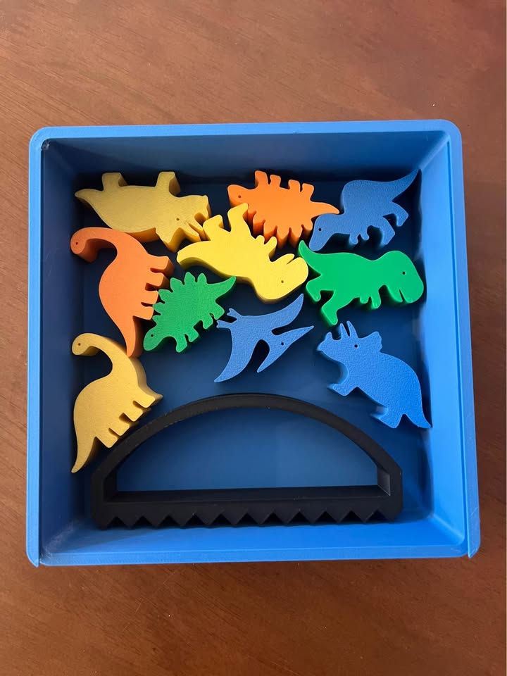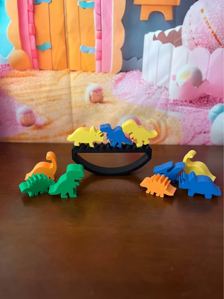 Try to balance them all — but watch out, one wrong move and they’ll tumble! 🦕