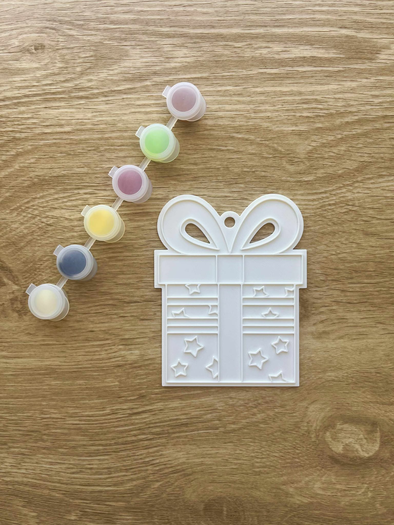 Each pack includes two 3D printed ornaments and a set of festive paints — perfect for siblings to share or for little ones who love getting creative. Choose from a mix of Santa, Reindeer, Present, or Christmas Tree designs and bring them to life with your own festive colours!