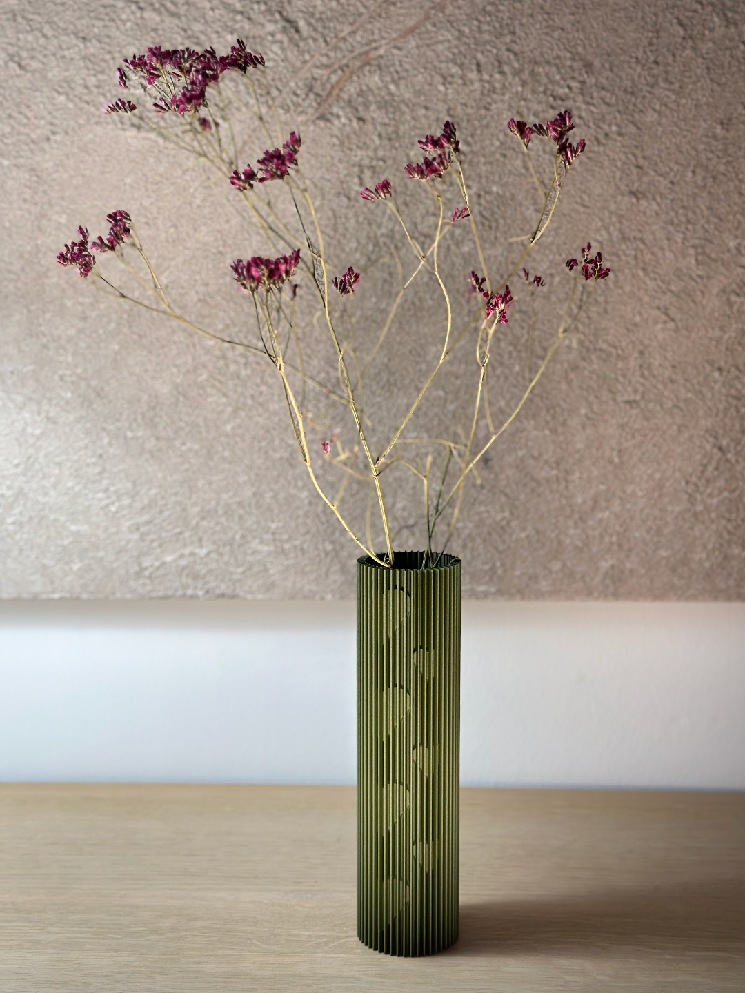 Bring warmth and elegance to your space with our Heartline Vase, a modern statement piece designed for dried or preserved flowers. Its tall, ribbed design subtly reveals a vertical pattern of hearts, making it both minimalist and full of charm.