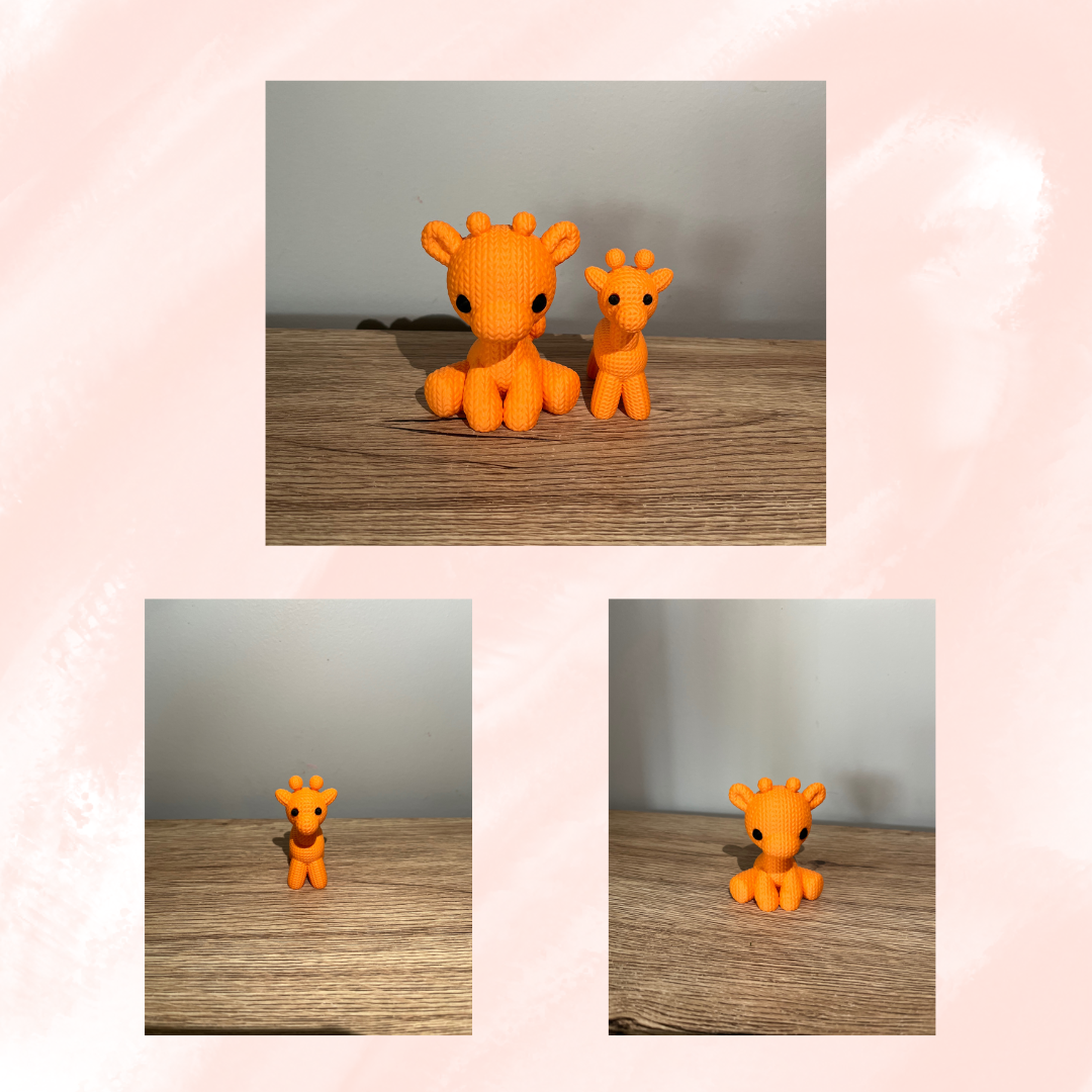 Double the charm, double the cuteness! Our Knitted Giraffe Duo includes one sitting giraffe and one standing baby giraffe—each crafted with a cozy, knitted texture and bold orange finish. Whether you're styling a nursery, gifting a loved one, or building your animal collection, this lovable pair is sure to stand tall in any space.