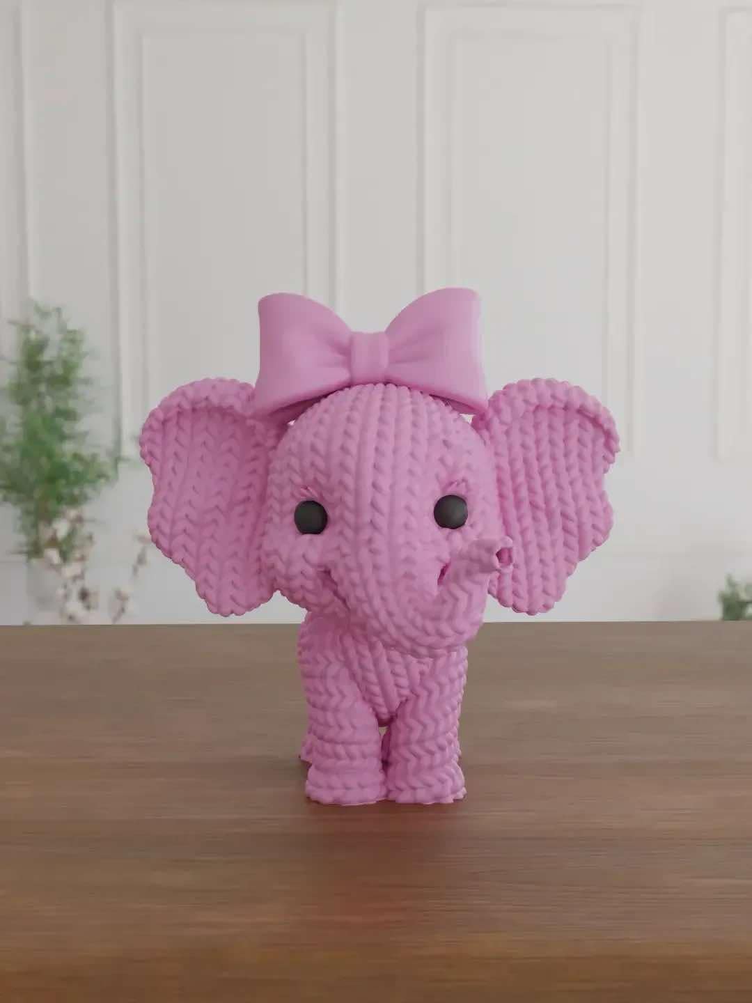 Add a pop of personality and charm to any space with our Knitted Pink Elephant Figurine, complete with a sweet little bow. With a handwoven look and bold color, this adorable companion brings a playful, handcrafted feel to nurseries, kids’ rooms, or collector shelves.