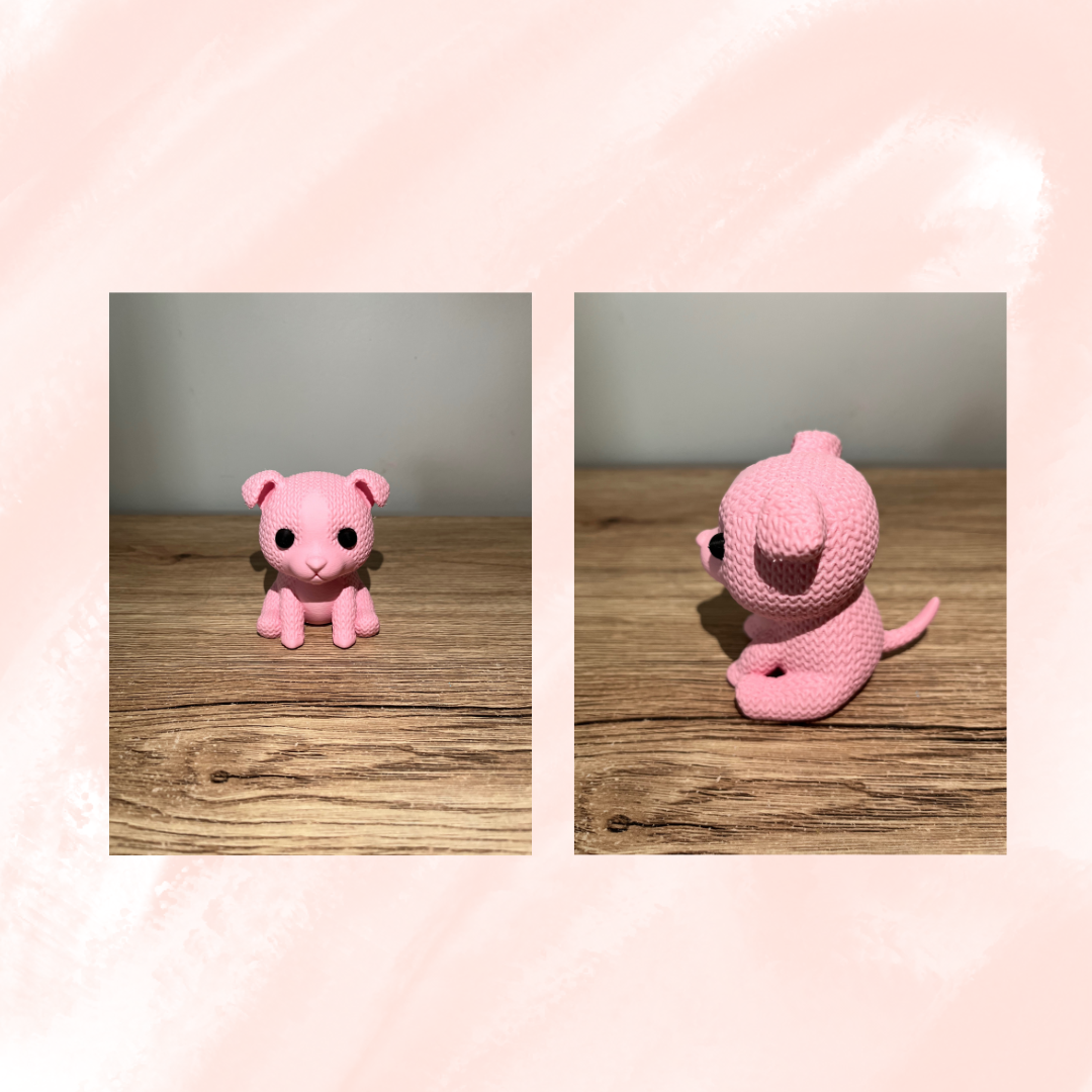 This sweet little pup is ready to sit, stay, and steal your heart. With a realistic knit-style texture and adorable pink finish, our Knitted Sitting Dog Figurine is the perfect companion for nurseries, shelves, or thoughtful gifting.